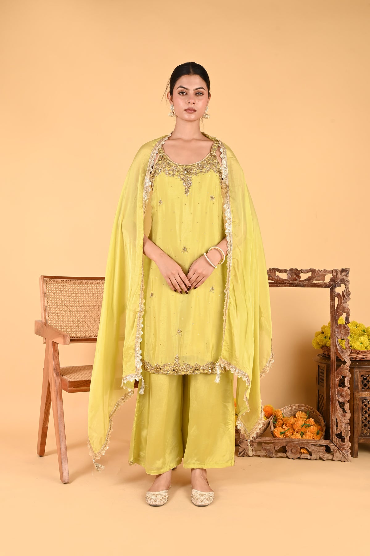 NR-120/ Lime Green Hand-Embellished Kurta Set